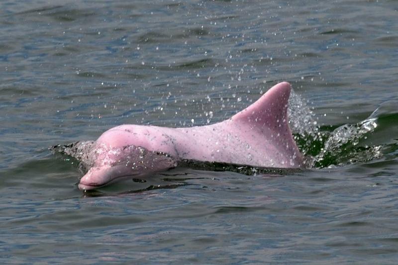 Este golfinho raro foi visto na costa de Hong Kong. Esta espécie de golfinho é chamada de golfinho branco chinês, ou golfinho jubarte do Indo-Pacífico.