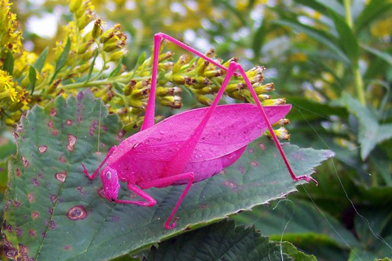 Esse gafanhoto não deveria ser rosa?