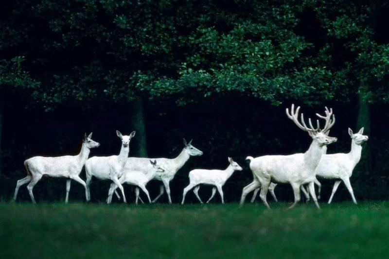 Algumas pessoas podem ter ouvido falar de um único cervo branco – mas um rebanho inteiro? Como tantos cervos podem se tornar albinos? Bem, a explicação mais provável é que eles não sejam albinos, mas leucísticos. Animais com leucismo não têm pigmento em todo o corpo. Essa característica genética geralmente aparece em cervos de cauda branca. Alguns deles chegam a ser meio castanhos, meio brancos!
