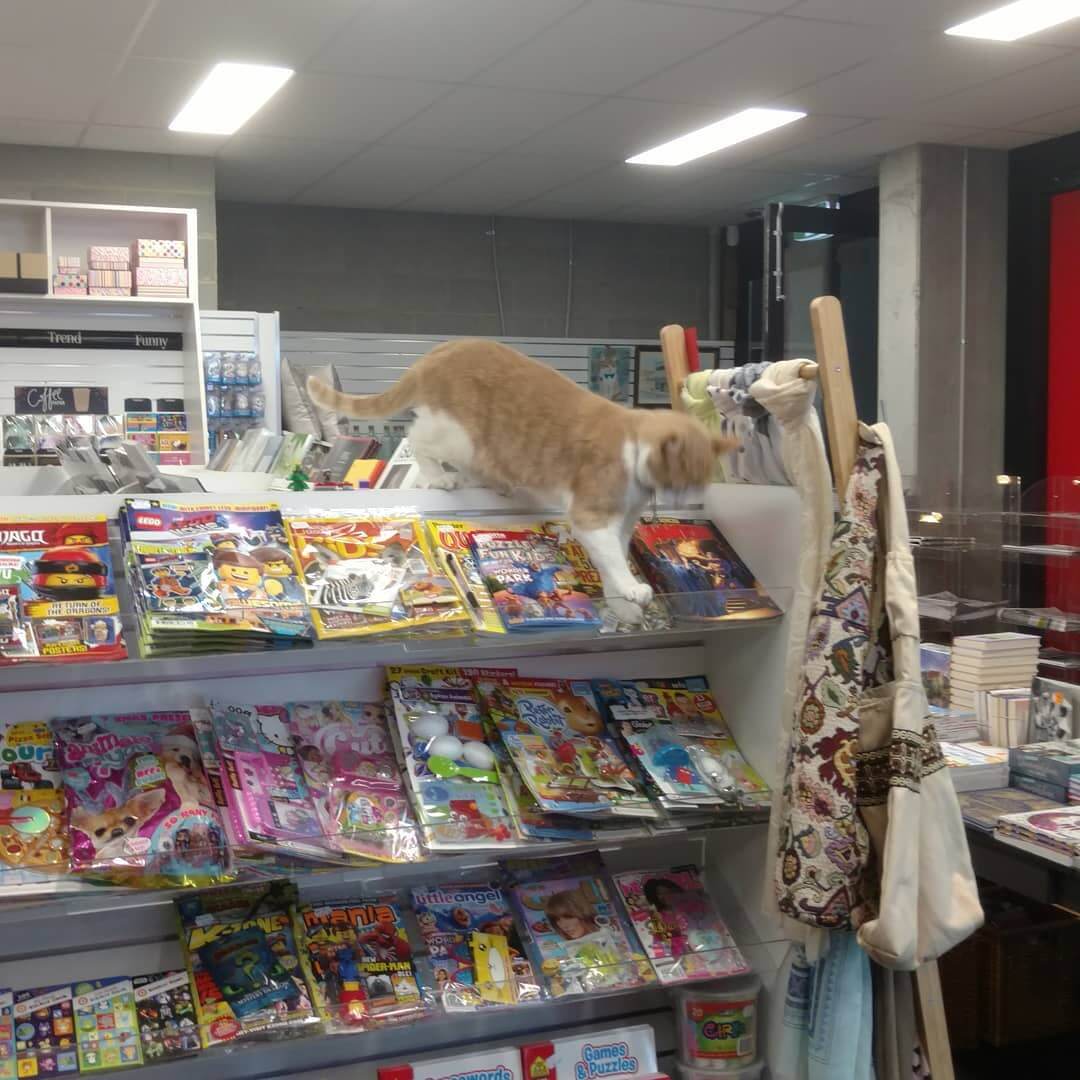 Este gato é dono de uma loja de quadrinhos