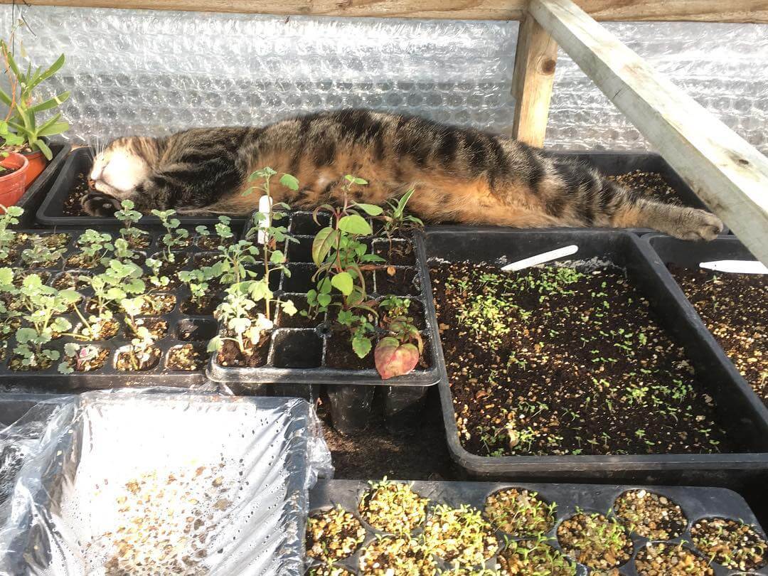 A jardinagem pode ser um trabalho muito árduo. Às vezes você só precisa tirar uma soneca depois de toda aquela escavação na areia para a colocação das sementes. Essa é a Mellie. Ela é uma jardineira profissional.