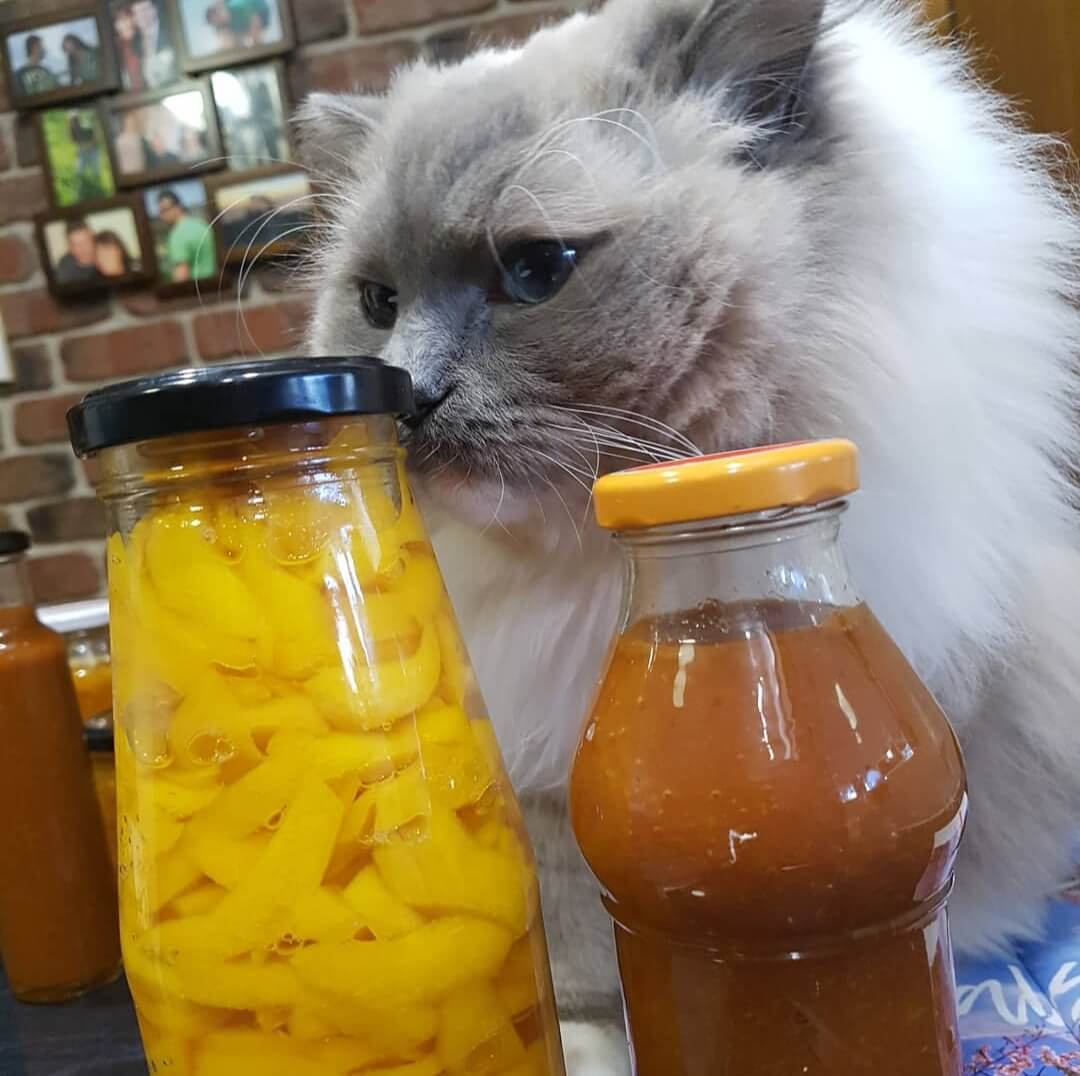 Todos os alimentos precisam ser inspecionados em algum momento ou outro, e existe exatamente um gato para fazer isso. É o gato Leopoldo. Ele é um gato que sabe sobre o cheiro de um pote fechado de pêssegos. Nenhuma impureza vai passar pelo seu nariz afiado.
