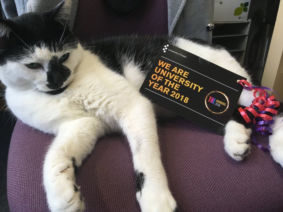 Quando não está realizando suas palestras, ele descansa em cadeiras da universidade. Ele também dorme muito, mas não na aula pois é um gatinho muito dedicado.