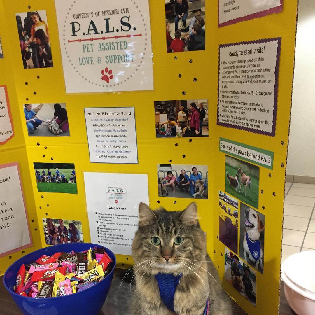 Este é Wren. Ele é um gato de terapia. Basicamente, é seu trabalho ir a lugares como asilos, campi universitários, escolas primárias e abrigos para sem-teto para fazer com que todos se sintam um pouco mais calmos e confortáveis.
