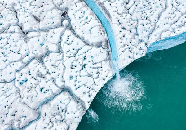 Quebrou recordes meteorológicos quando a temperatura do ar atingiu subitamente 21,7ºC. Esta imagem traz evidências da quantidade de água doce caindo do derretimento da calota de gelo de Austfonna no mar. A temperatura média do ar em Svalbard aumentou 3-5°C nos últimos 50 anos.