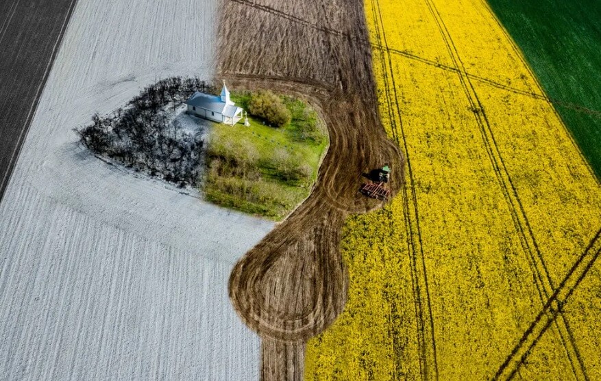 Este é o quinto desta série. Um trator está trabalhando no campo. O aplicativo de drone fez a captura da imagem no momento exato da ação. Ficou incrível a imgagem.