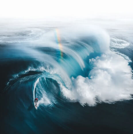 Aplicativo mostra um surfista, Ollie Henry, que escapa de uma onda monstruosa na costa do sudoeste da Austrália.