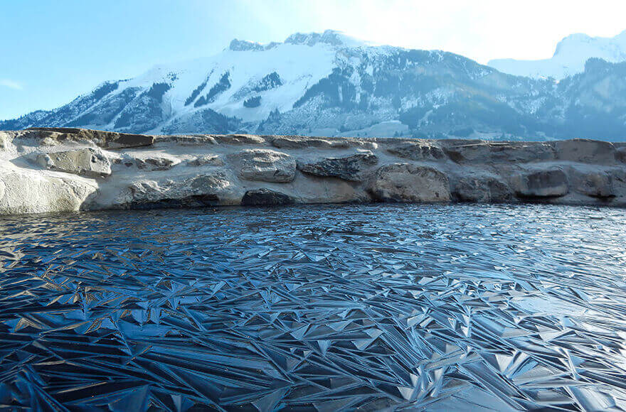 Acredite ou não, este é um lago que congelou na Suíça. A água congelada parece algo de outro planeta, e é difícil acreditar que a natureza seja capaz de fazer essas formas geométricas naturalmente.